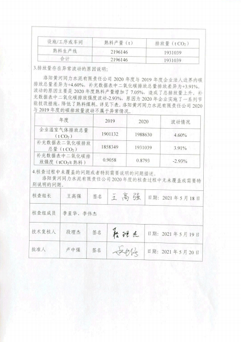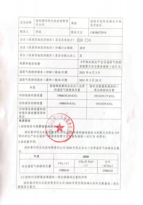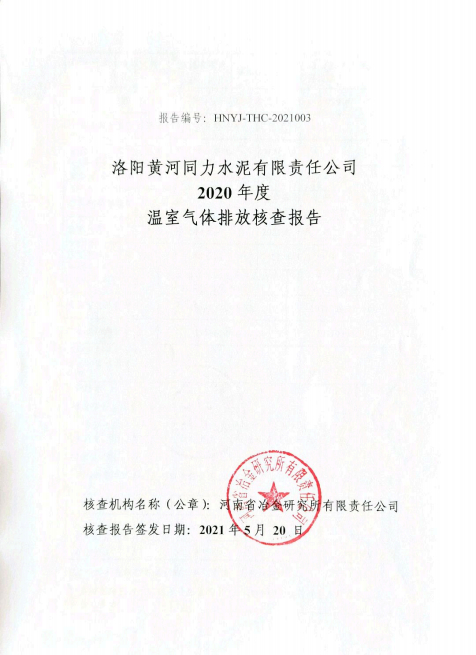 洛陽黃河同力水泥有限責(zé)任公司2020年度溫室氣體排放核查報(bào)告